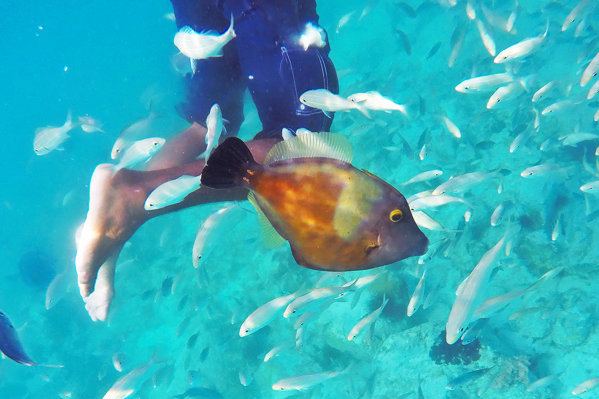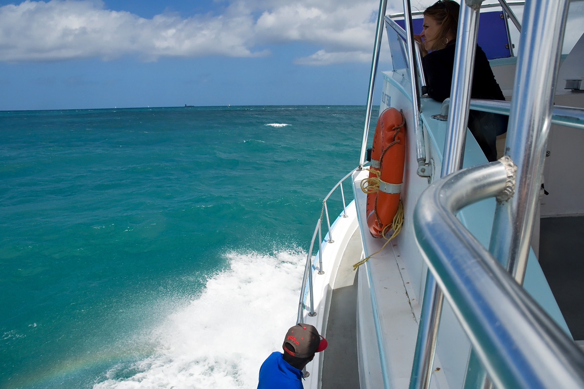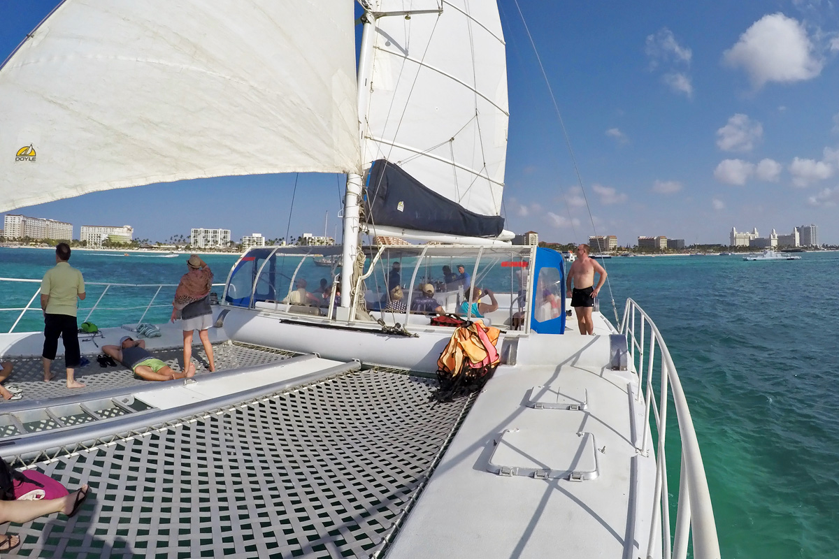 Am frühen Nachmittag ging es auf einen ersten Ausflug mit einem Katamaran zum Schnorcheln und anschließender Fahrt in den