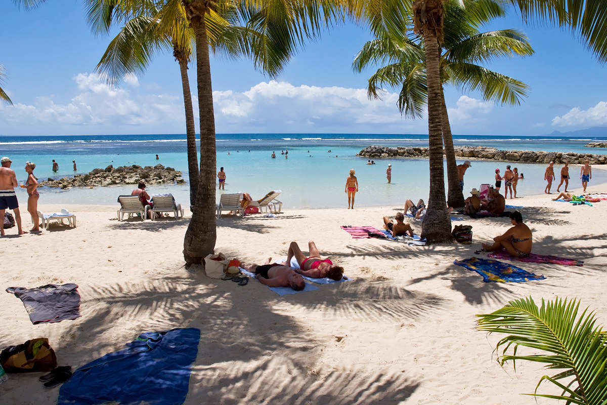 In Guadeloupe ging es "nur" an einen sehr schönen Strand mit weißem feinen Sand und Palmen bei Sainte-Anne. Das Wasser war herrlich und man konnte mal einfach nur entspannen: