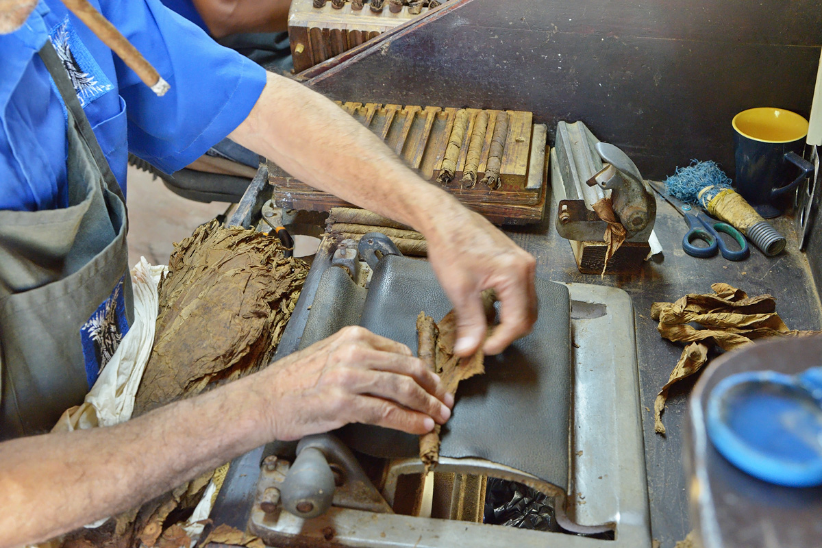 Nach dem Rollen werden die Zigarren gepresst und später getrocknet